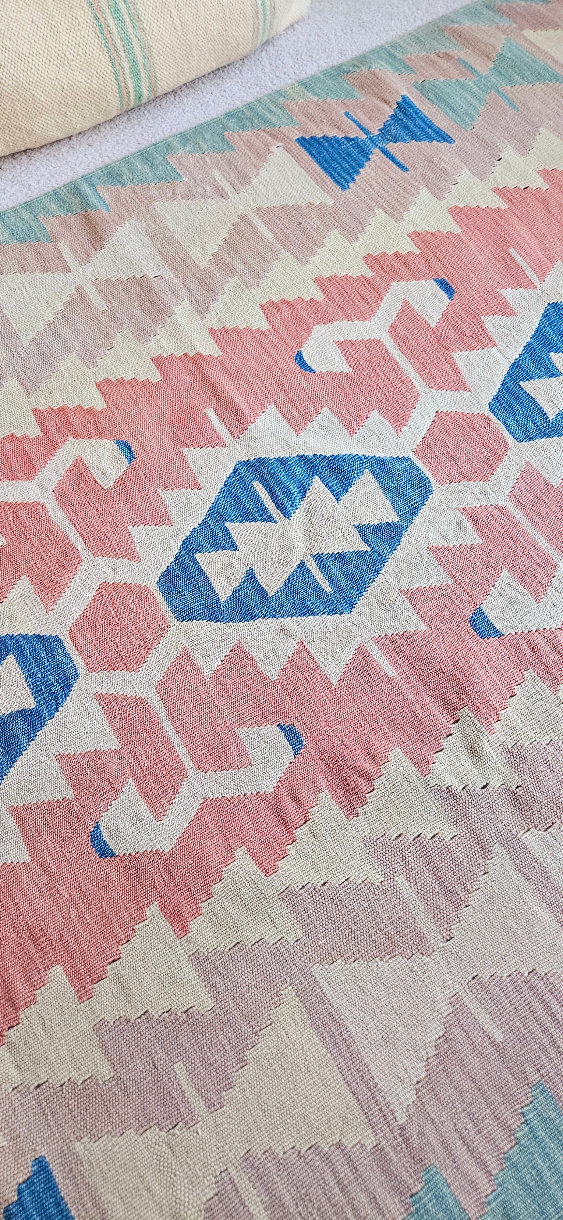 Blush and mint green vintage turkish kilim.