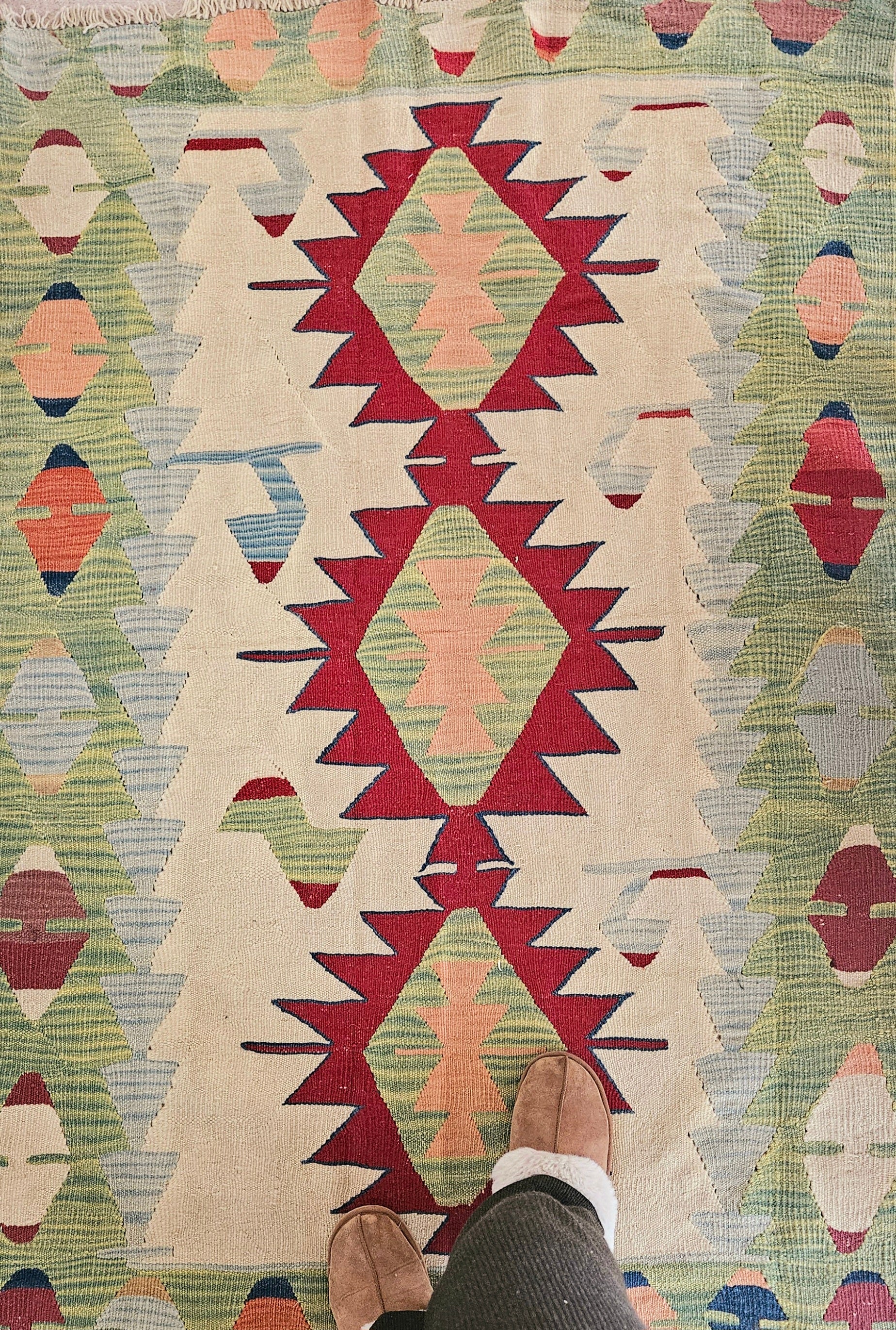 A stunning kilim, handwoven in Turkey . Vintage 1970s.