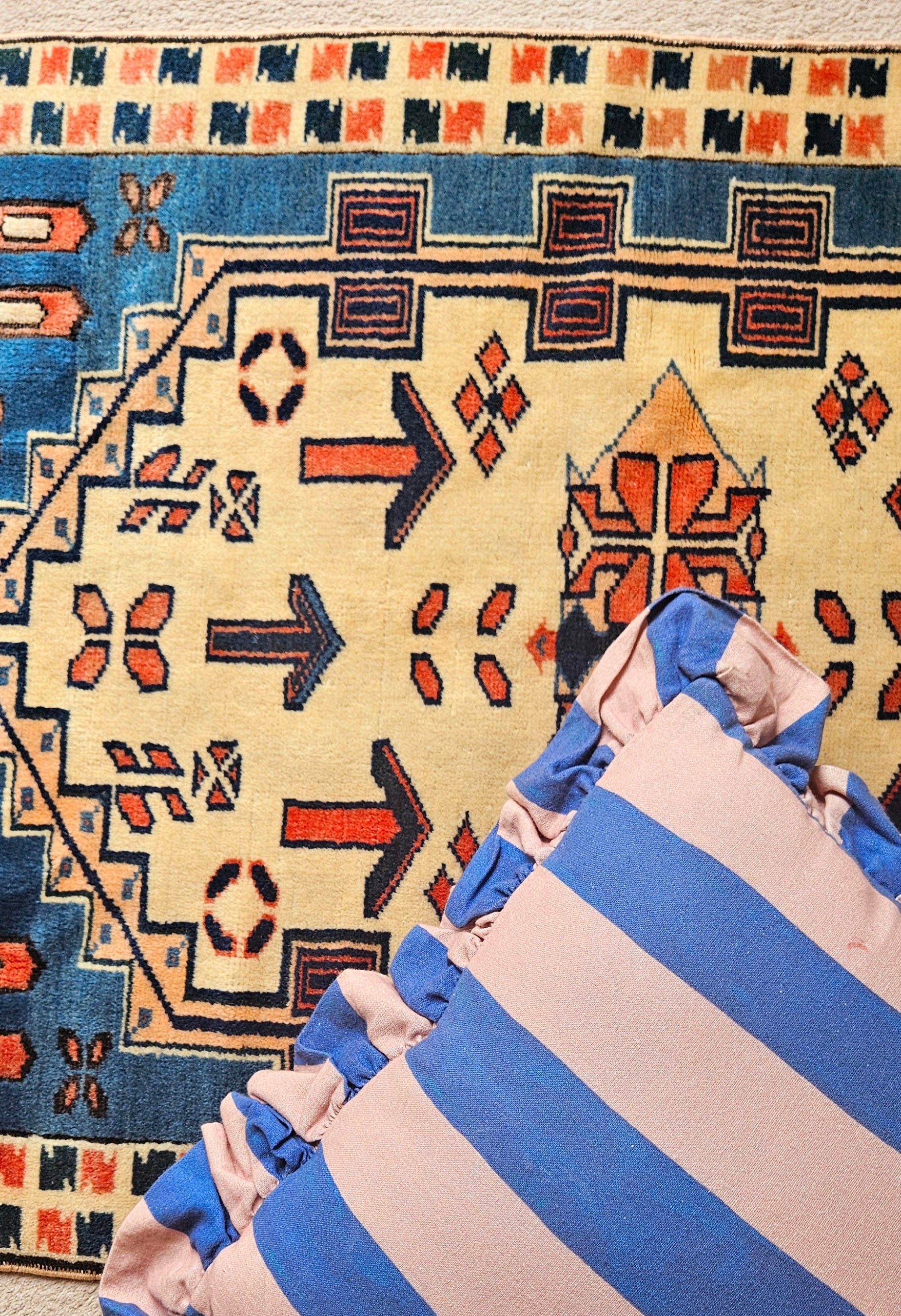 Small but super cute vintage Turkish Rug, wool on cotton. Handwoven and low pile.