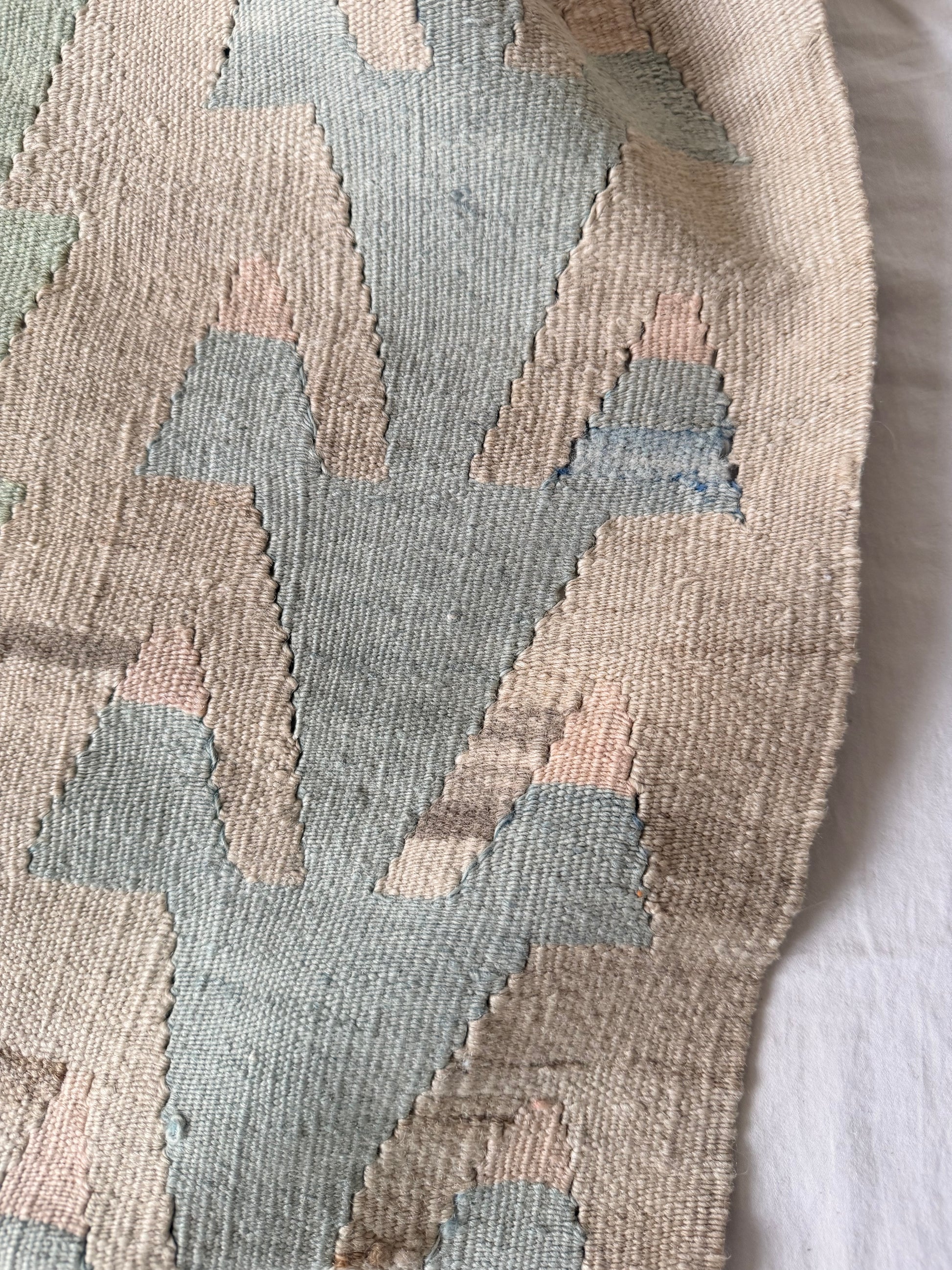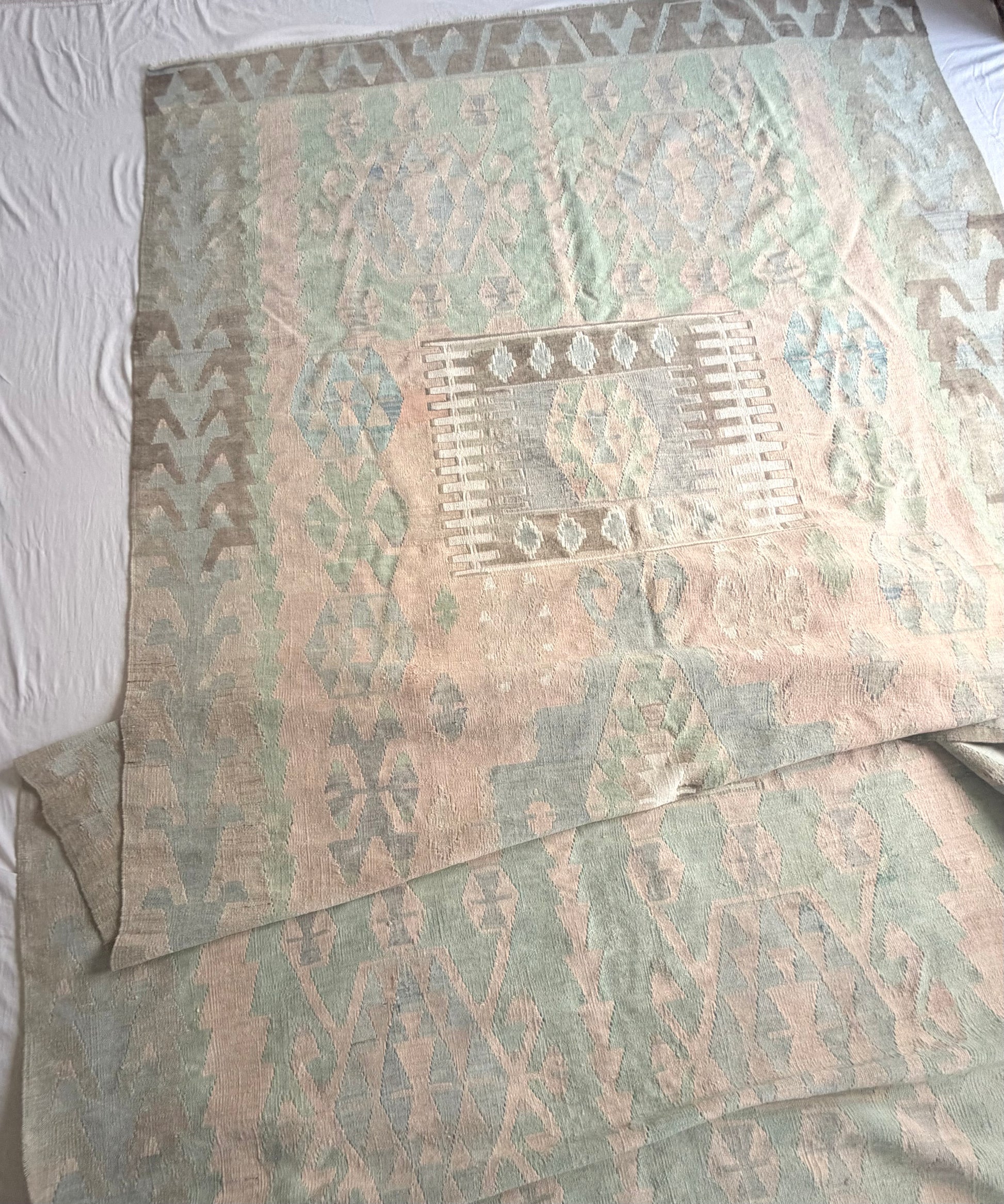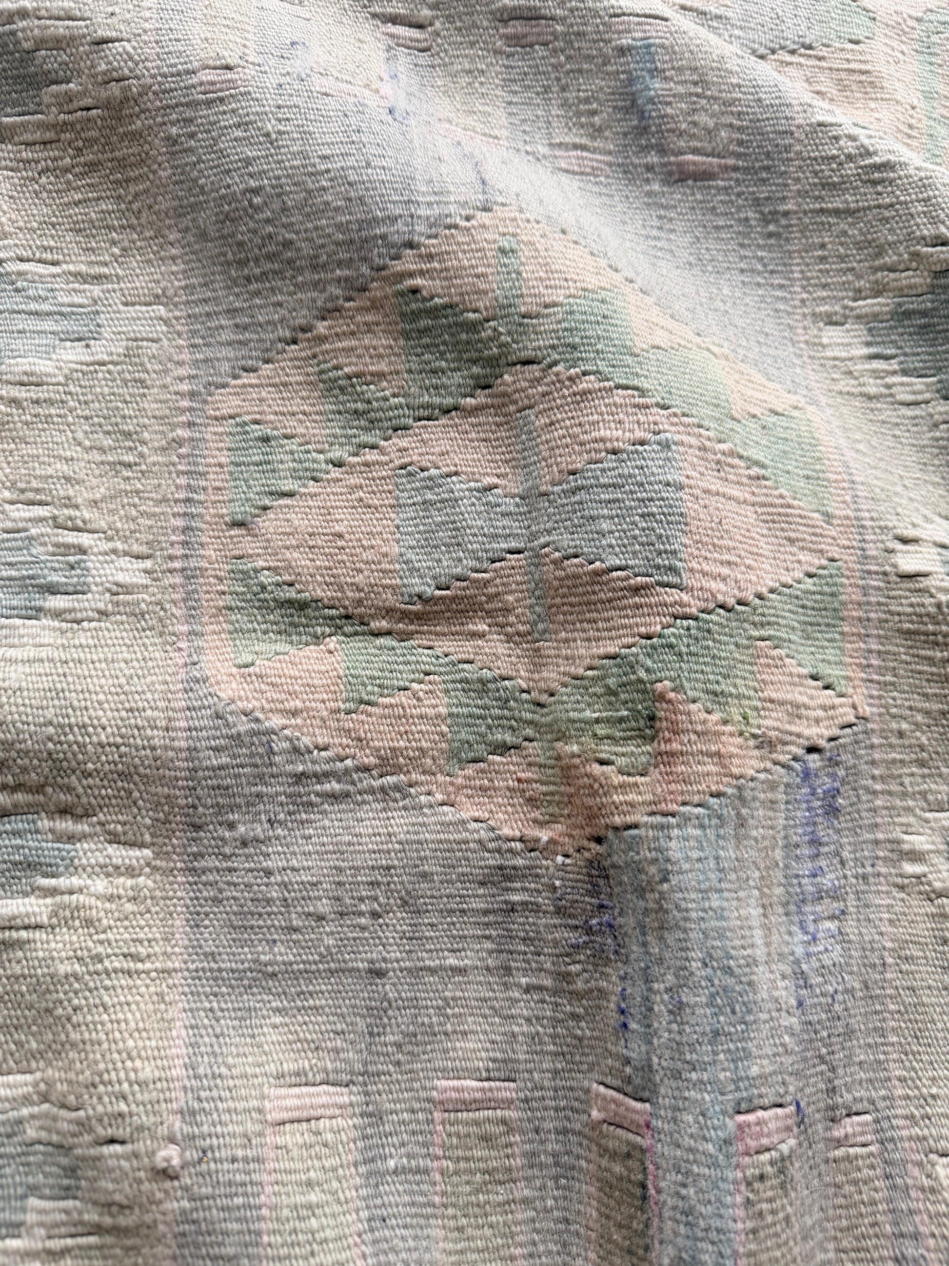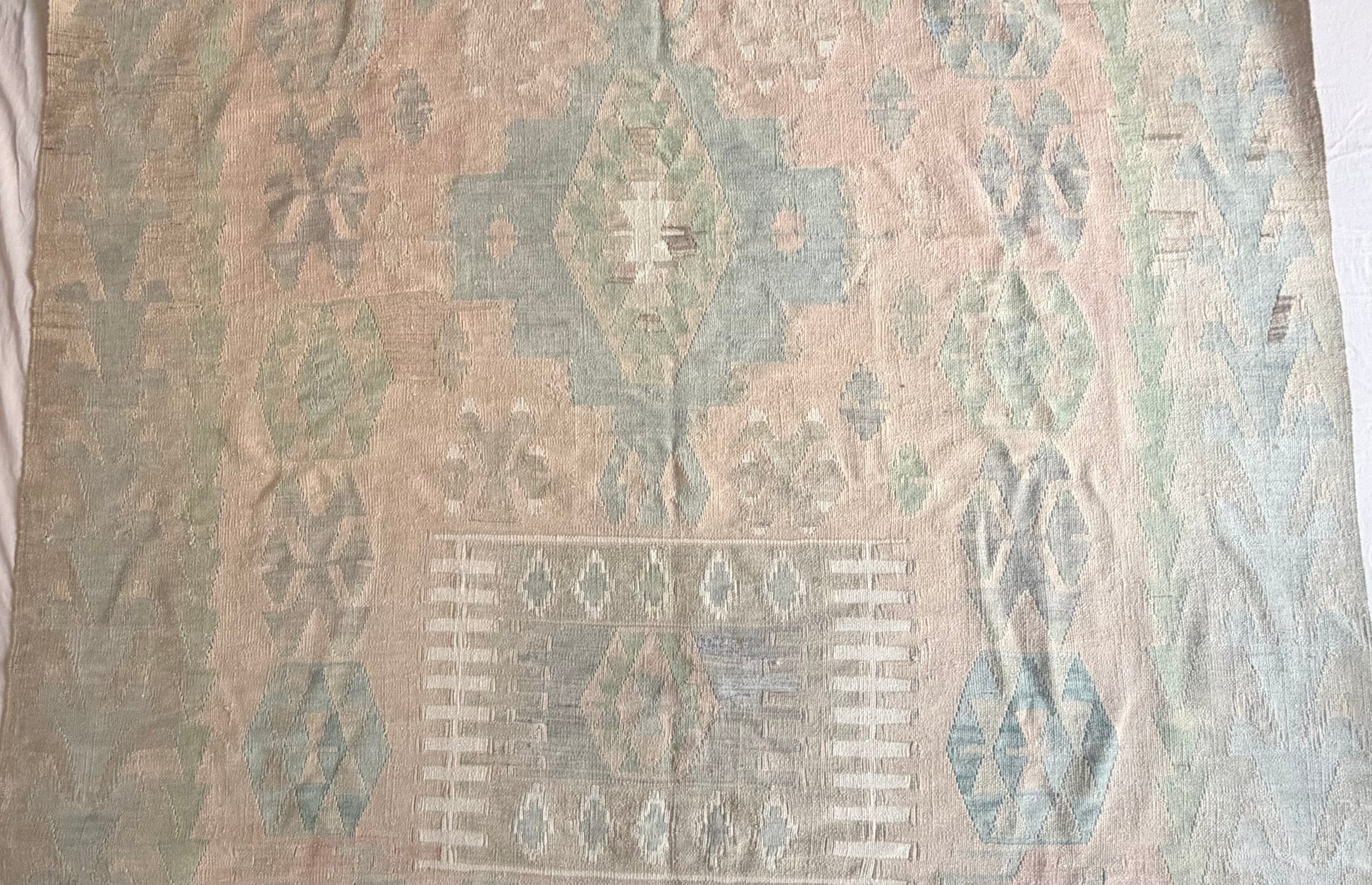 A rare Anatolian slit-weave handwoven and vintage, with a gently faded look that feels calm, relaxed and lived-in.