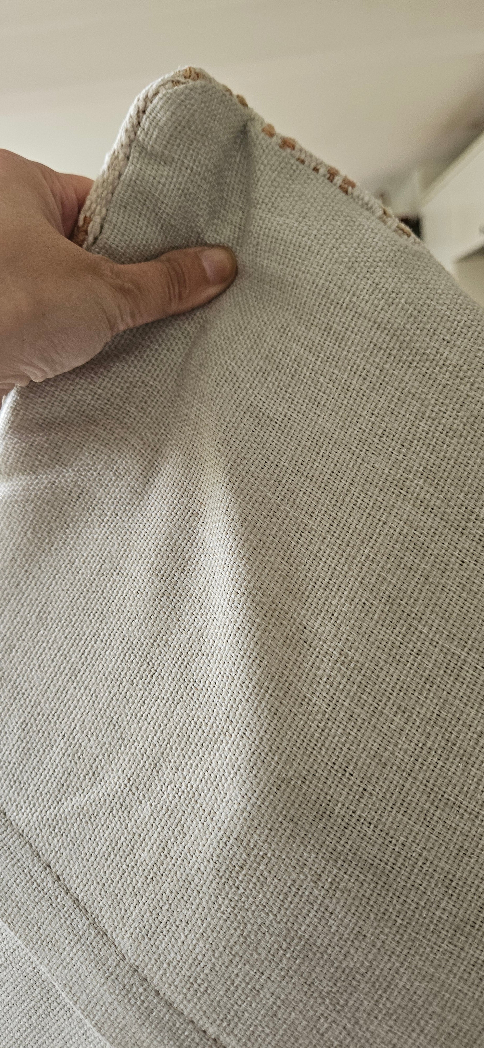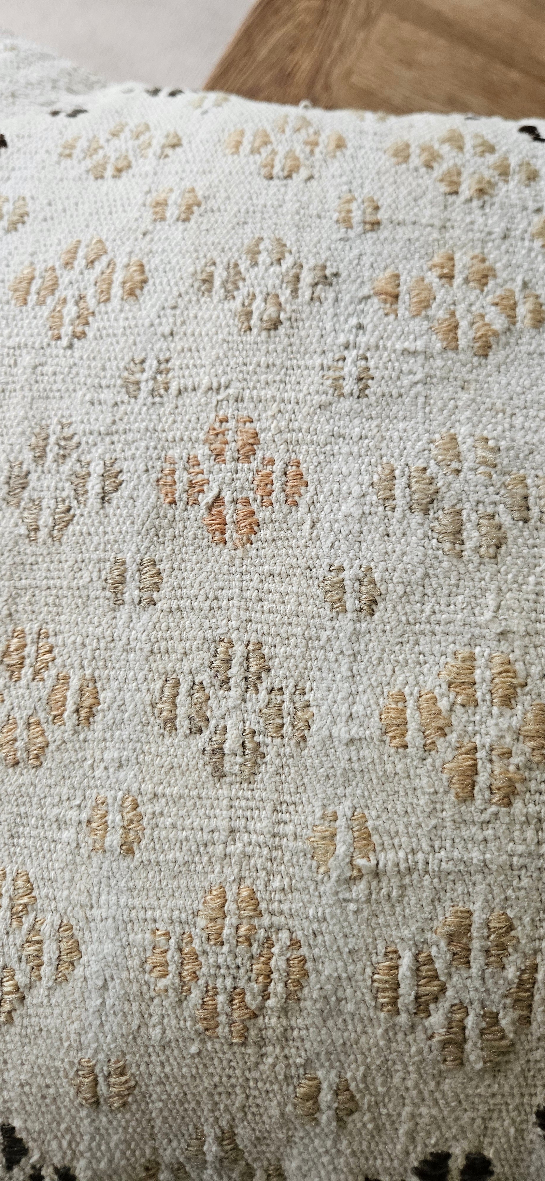 A neutral woven kilim cushion cover. Repurposed from a cicem with hand embroidered motifs. This style derived from the southern regions of anatolian.
